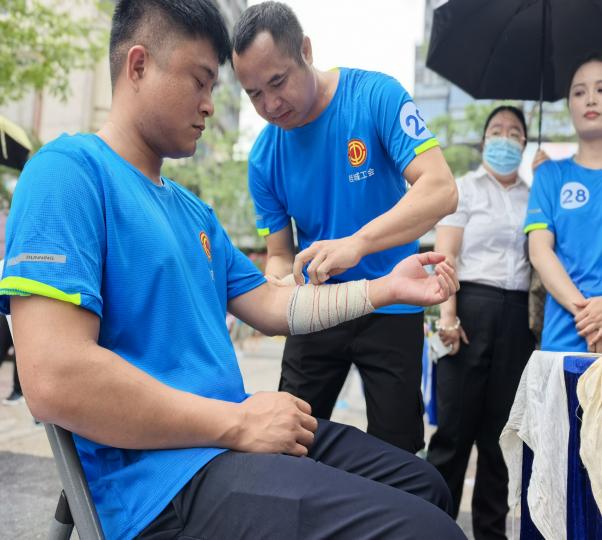 比赛现场,来自桂城街道各行各业的54支工会代表队展开激烈角逐。竞赛项目设置原地着装、灭火救援、水带连接、创伤包扎、心肺复苏等五大实战项目,全方位考核选手的应急反应速度和团队协作能力。