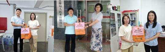 (7 月 31日,南海区总工会和桂城街道总工会紧急调拨 首批专项防蚊物资下发到华车公司,以实际行动守护职工健 康。 图为: 李利克主席接受桂城街道总工会朱秀娟副主席 (中)下拨的防蚊物资)