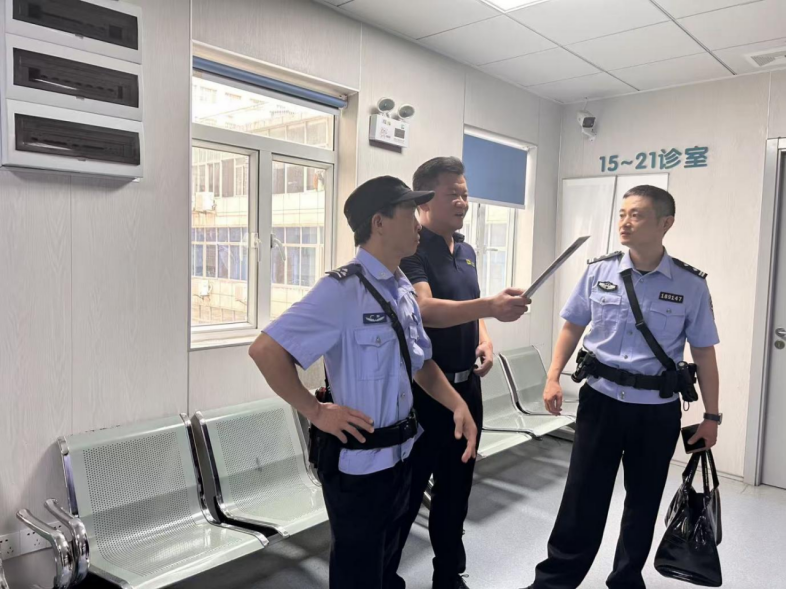 在接诊医生隐蔽触发“一键报警”后,医院监控中心迅速指令特勤人员前往处置。华车南剑保安团队闻令而动,特勤人员率先在3分钟内抵达现场,立即拉起隔离带,有序疏散候诊群众,并对“激动男子”进行口头劝导,稳定其情绪。