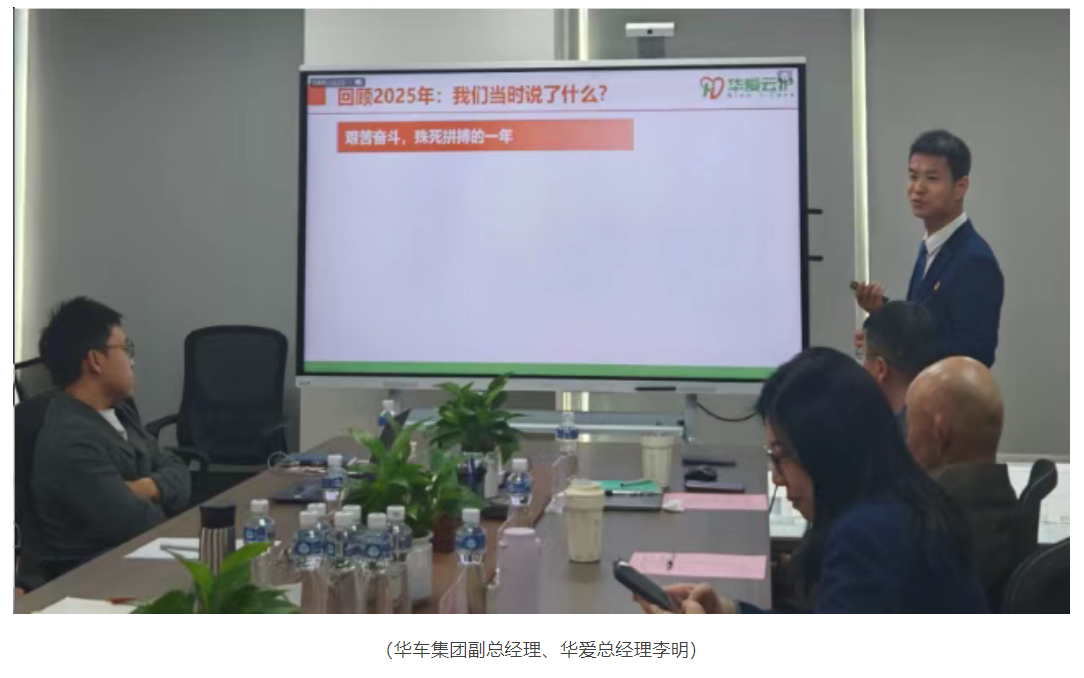 为全面复盘2025年度各项工作,系统擘画2026年发展战略,进一步凝聚全员共识、汇聚发展合力,2026年1月24日,华车集团2025年度总结大会在佛山总部隆重举行。华车集团董事长、总经理袁国辉先生出席会议并作重要讲话,集团高层管理人员、各区域总监、各中心及事业部负责人等核心管理骨干20多人参会。