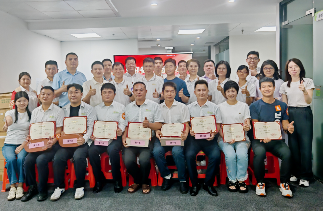 公司领导依次为获奖选手颁奖并合影留念,所有参赛人员均获得工会精心准备的纪念品。