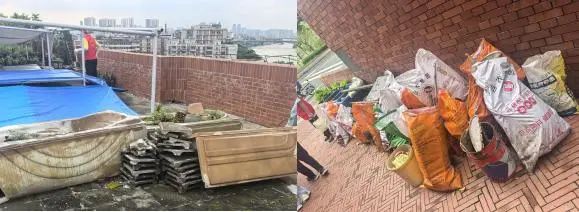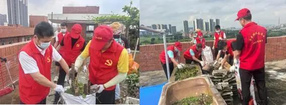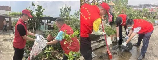 队员们爬上屋顶平台,顶着烈日俯身清理积水死角,拔除 丛生杂草,细致清理腥臭淤泥与垃圾,挥锹平整蚊虫孳生地, 以汗水降低蚊虫滋生风险;他们规整盆栽、清运垃圾,保持环 境通风干燥,从源头掐断蚊虫繁衍路径……从隐蔽缝隙到露天 角落,每一处清理都精准瞄准“蚊虫滋生源头 ”,绝不给蚊虫 留栖息空间。