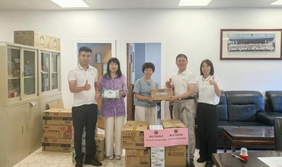 (7 月 31日,南海区总工会和桂城街道总工会紧急调拨 首批专项防蚊物资下发到华车公司,以实际行动守护职工健 康。 图为: 李利克主席接受桂城街道总工会朱秀娟副主席 (中)下拨的防蚊物资)