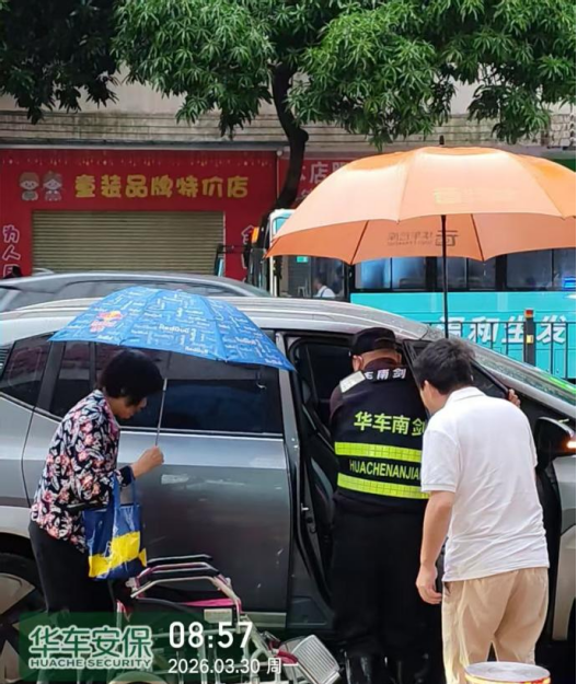 与此同时,当一位行动不便的患者就诊结束、准备上车回家时,保安员主动上前弯腰搀扶,一路护着患者走到车辆旁,细心帮助他上车、调整好座椅,确认患者安全坐稳后,才放心地关上车门,目送车辆缓缓驶离,用全程的贴心照料,守护患者出行安全。