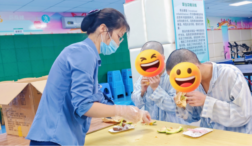 生日会现场简约温馨,没有繁琐流程,处处洋溢暖意。在医护人员、华车陪护人员与救助站工作人员的陪伴下,寿星们围坐一堂,满怀期待与喜悦。大家共同唱响生日歌,悠扬歌声在病区回荡,传递真挚祝福。烛光闪烁间,香甜蛋糕与新鲜水果承载着美好心意,陈展翔与工作人员一同为患者分切蛋糕、递送水果、发放礼品,温暖直达心底。不少长期情绪低落的患者展露久违笑容,主动与工作人员交流互动,现场氛围轻松治愈。
